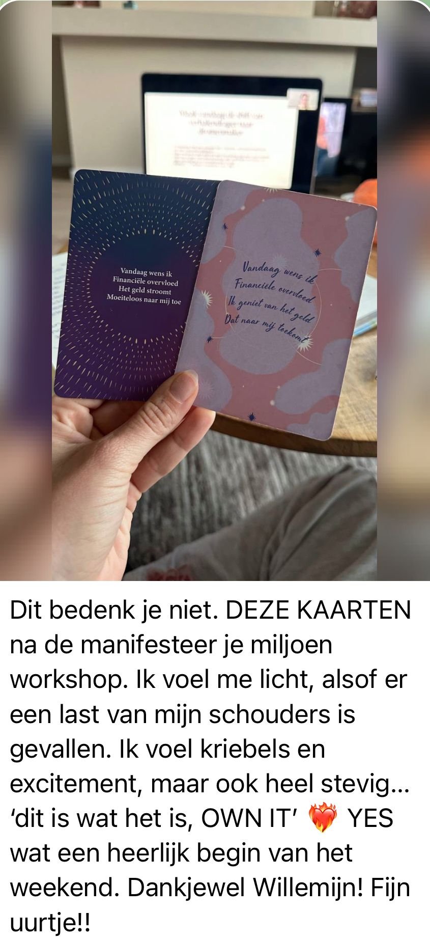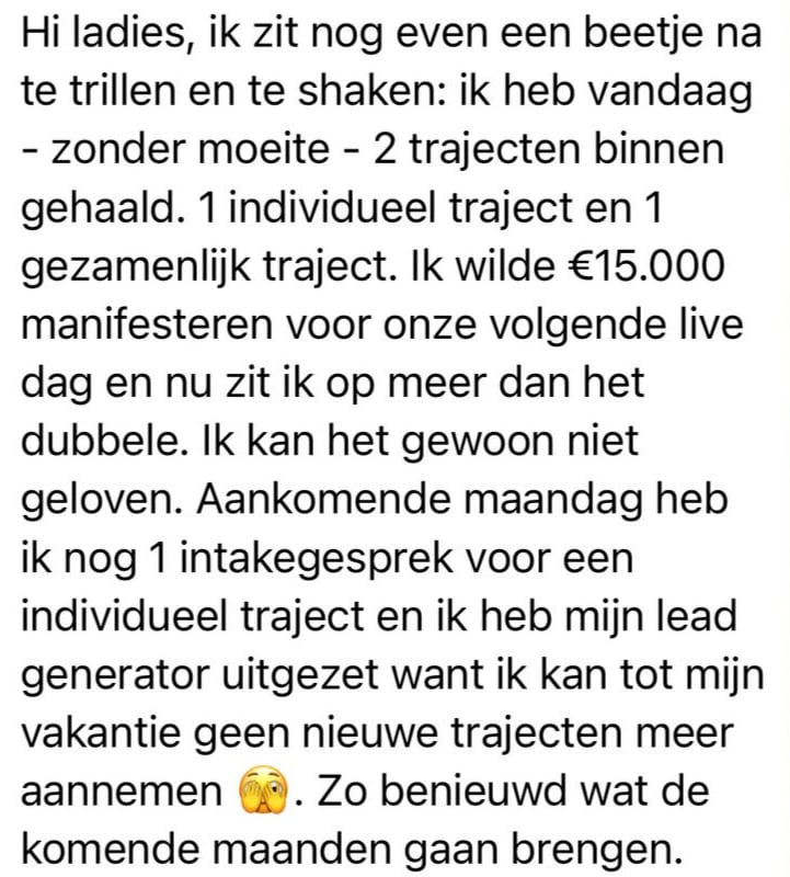 Je kan de masterclass eindeloos terugkijken. Hij staat voor je klaar met het werkboek in mijn high vibe community.