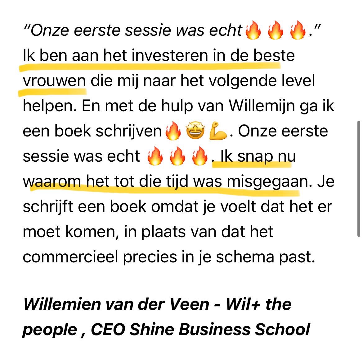 Zolang als Willemijn Welten BV bestaat, heb jij toegang tot de modules. En het leuke is: ik ben voorlopig nog laaang niet van plan om te stoppen. Sowieso de komende jaren ben ik er om jou te inspireren, begeleiden en te helpen manifesteren. Dus neem vooral je tijd — het blijft allemaal beschikbaar voor jou.