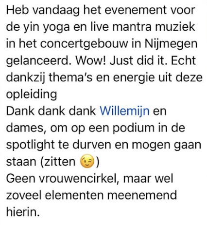 Willemijns Wondere Wereld is geen losse training. Het is een energetisch veld waarin jij je dromen waarmaakt. Vraag maar aan de andere deelnemers.