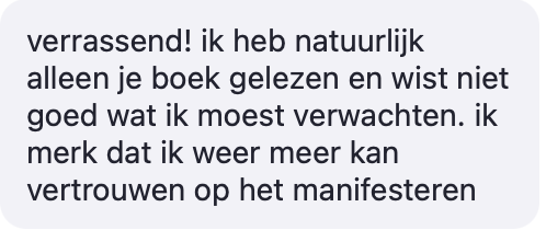 Je leert hoe je manifesteert vanuit zijn in plaats van doen. Door te zakken in vertrouwen en te handelen vanuit afstemming verandert je realiteit, zichtbaar en voelbaar.