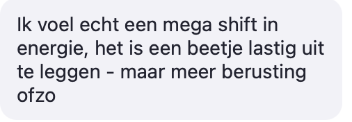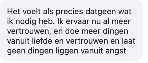 In de Telegramgroep, tijdens live sessies en in alles wat gespiegeld wordt: je groeit sneller doordat je samen bent. Je voelt je gedragen.