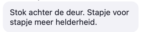 Je bent niet meer alleen, en in plaats van te stoppen als het spannend wordt, check je nu in en voel je de eerste (veilige) stap vooruit.
